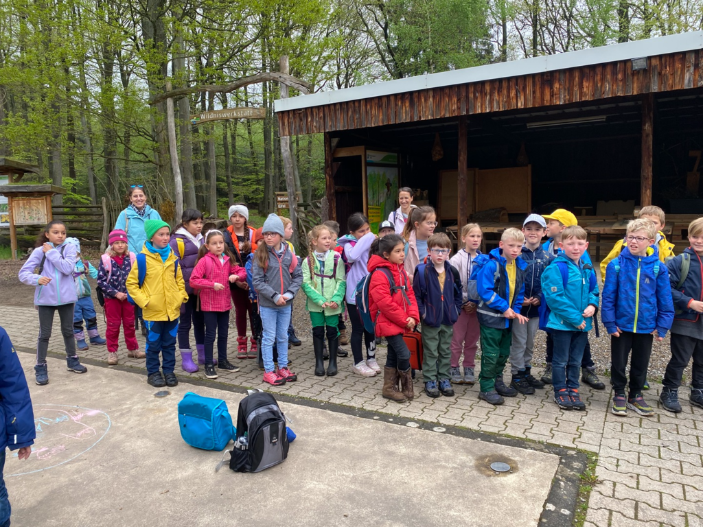 Zuerst sind wir 45 Minuten mit dem Bus zu der Wildniswerkstatt gefahren. Danach sind wir aus dem Bus ausgestiegen. Dann hatten alle Hunger. Dann sind wir in den Wald gegangen. Da sind wir erst mal